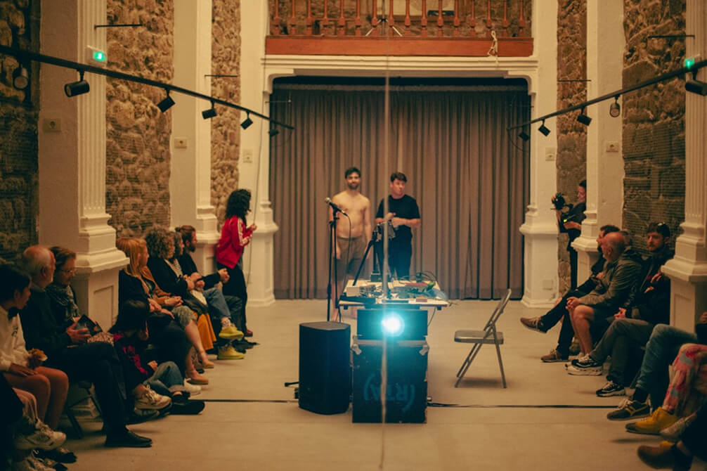 Do outro lado es una performance de Brais Pombo y Fran Rodríguez Casal que reflexiona sobre el ecologismo y la comunidad en el ámbito rural. Inspirados en las revueltas vecinales ocurridas en las décadas de los años 80 y 90 en su aldea natal, Traspielas, los autores usan material de archivo, basura recogida en la montaña, movimiento corporal y creaciones audiovisuales en un espectáculo multidisciplinar donde se crea un diálogo entre pasado y presente cuestionándose la relación humana con el territorio. Proyecto ganador de la beca del colectivo RPM.