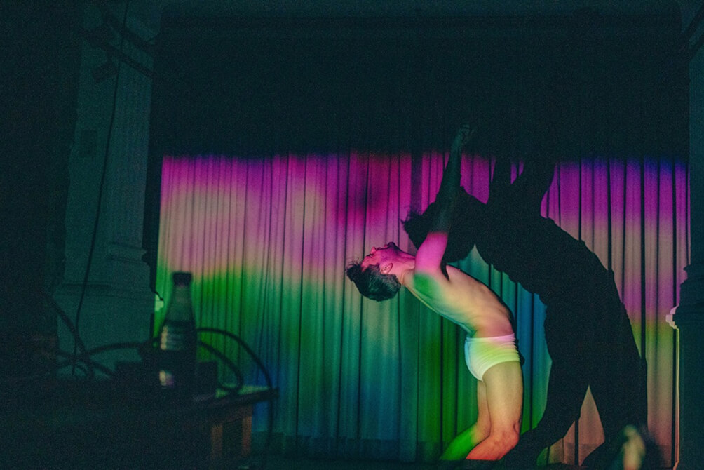 Este proyecto es una colaboración de Fran Rodríguez Casal, artista visual y cineasta que desarrolla proyectos personales de largo recorrido en el ámbito fotográfico dentro del documentalismo contemporáneo de autor, centrándose en la interacción entre cuerpo y entorno. Junto con Brais Pombo, actor y performer miembro de la compañía de teatro físico Mevadeus, valiéndose del cuerpo y la voz construye un diálogo constante entre el movimiento y la creación sonora en directo.